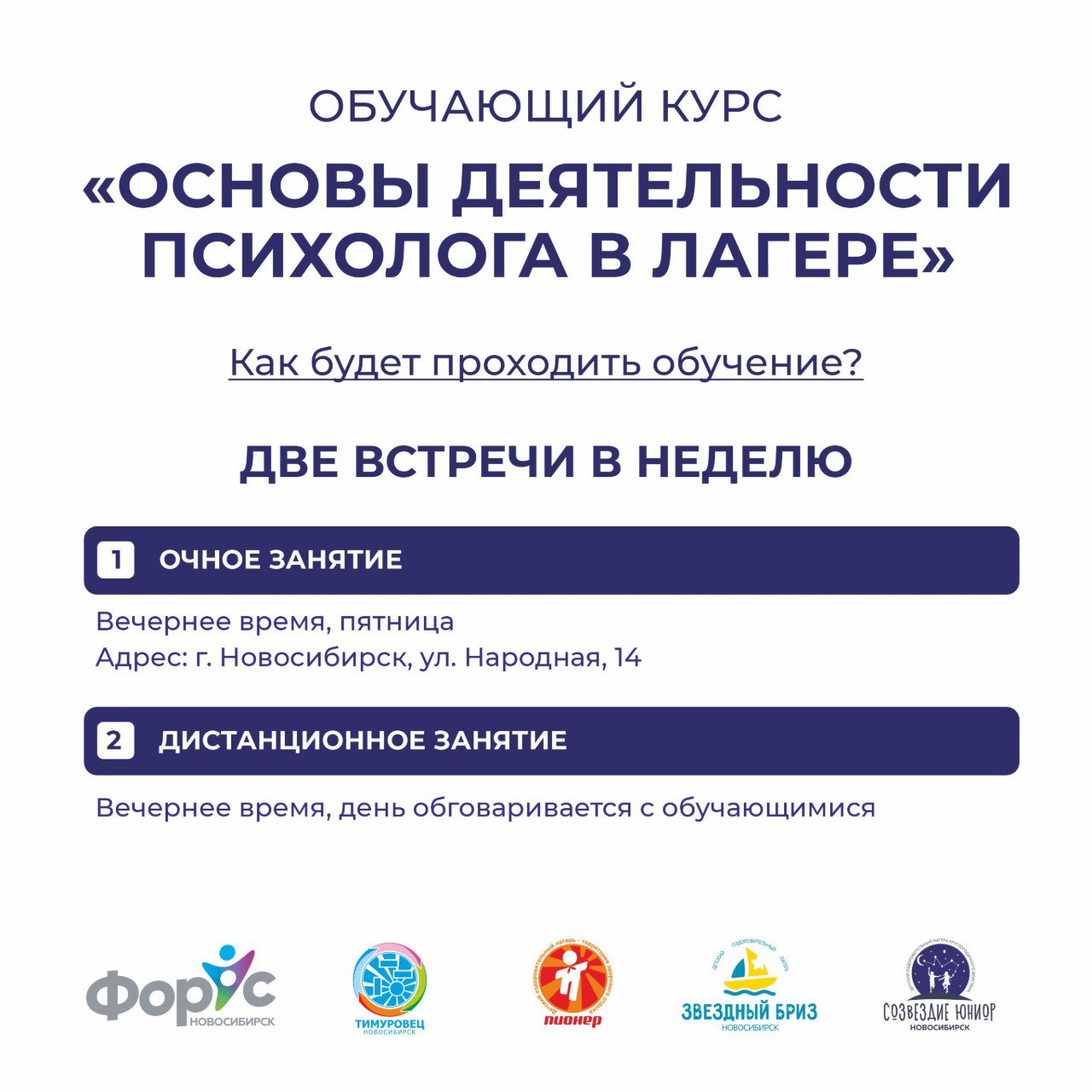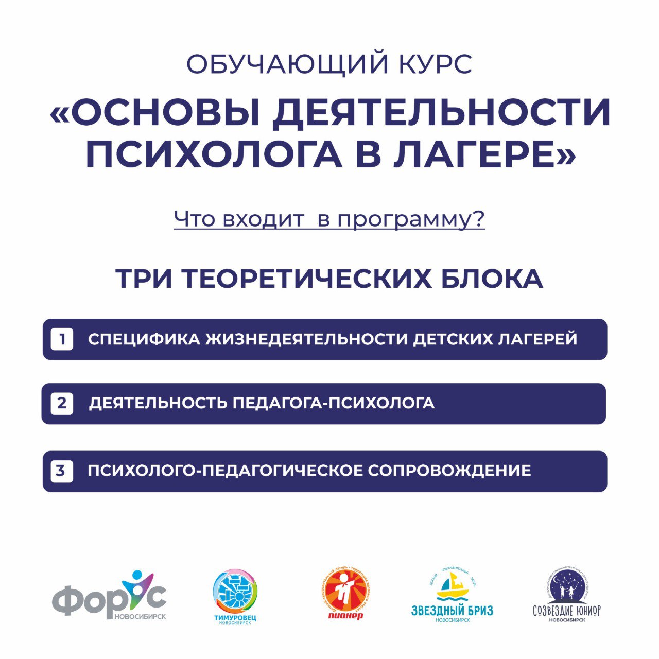 - Появится возможность трудоустроиться педагогом-психологом в один из лагерей ГРЦ «ФорУс»: «Тимуровец», «Пионер», «Звёздный Бриз» и «Созвездие Юниор».