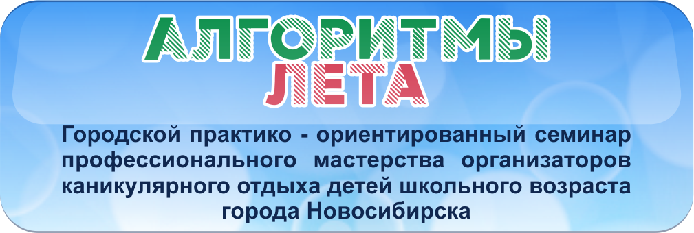 Цель семинара «Алгоритмы лета» – создание условий для развития профессиональной компетентности специалистов, занимающихся организацией каникулярного отдыха, оздоровления, занятости детей и подростков города Новосибирска.